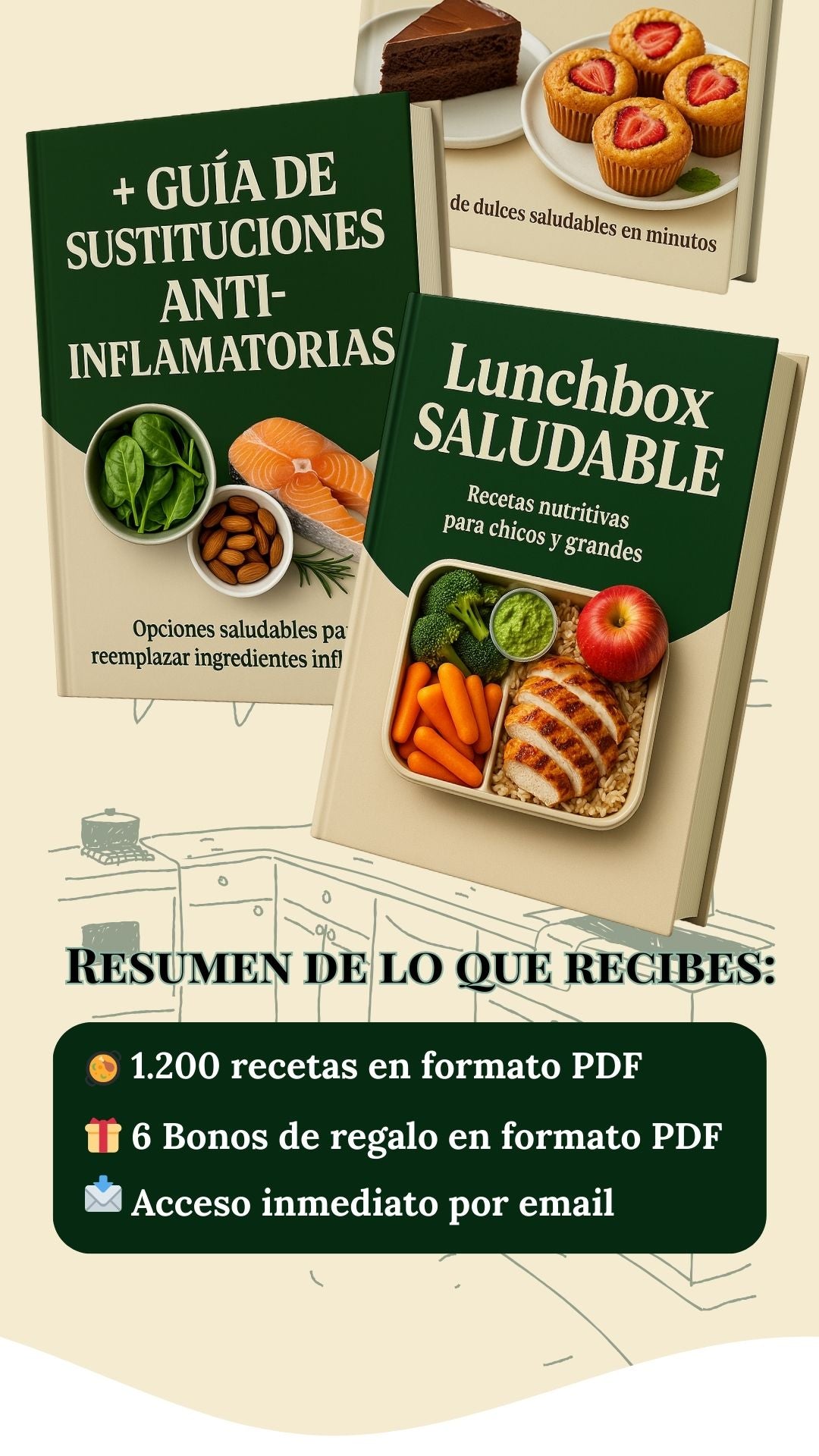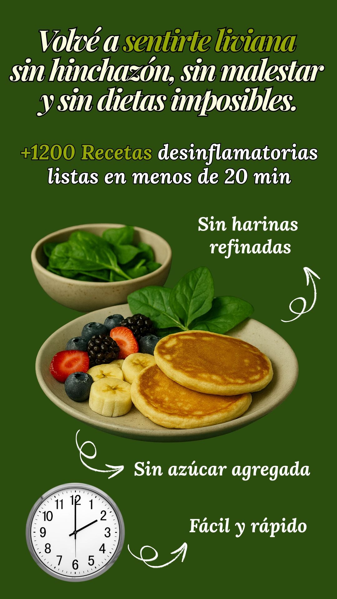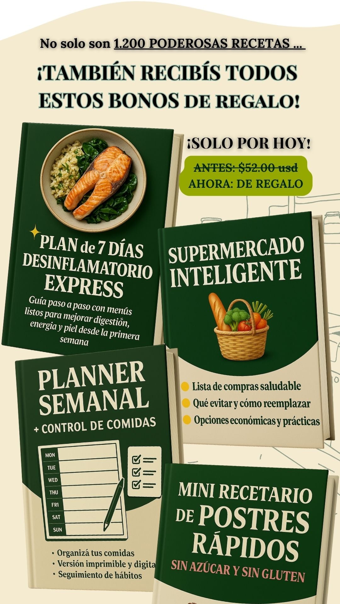 Sin harinas inflamatorias · Sin azúcar agregada · 6 bonos incluidos · Acceso inmediato y de por vida · Garantía 90 días