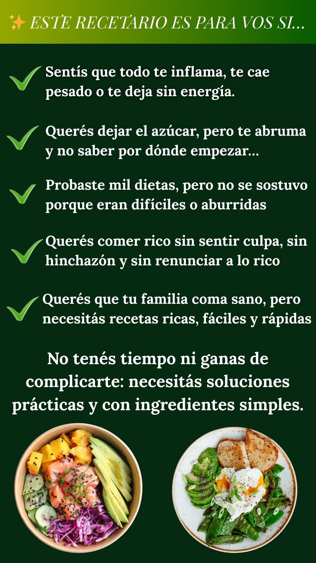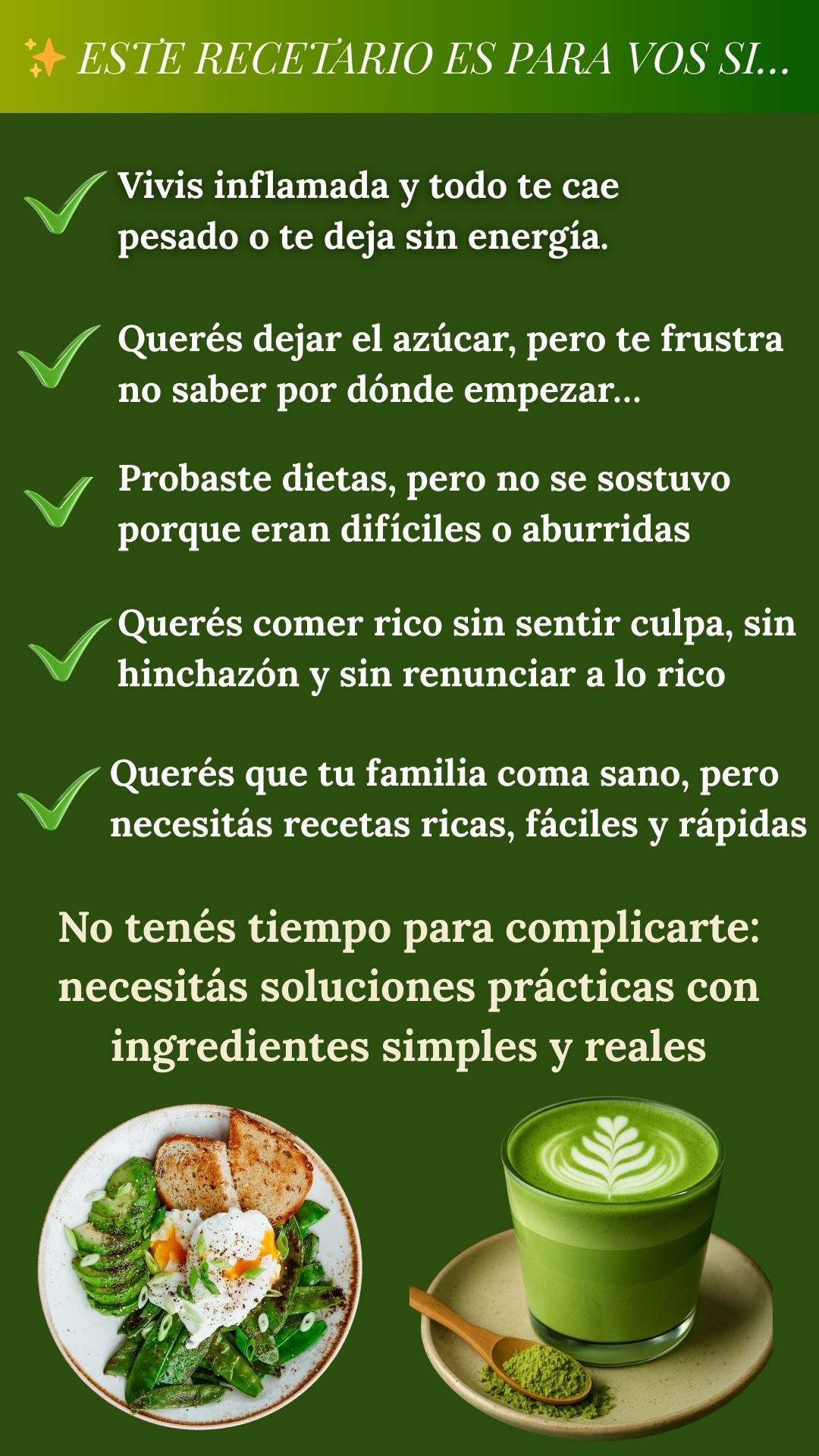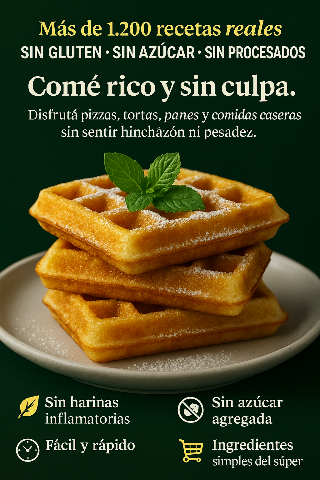 Sin harinas inflamatorias · Sin azúcar agregada · 6 bonos incluidos · Acceso inmediato y de por vida · Garantía 90 días